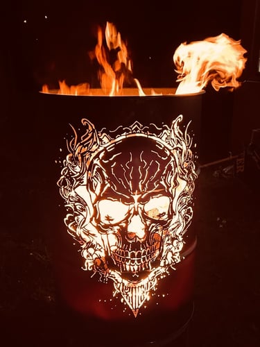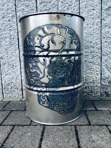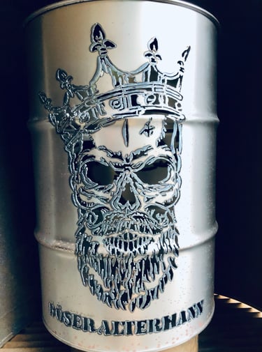 Füürfässer mit Totenköpfen/ Heavy Metal/ Rocker-Sujet