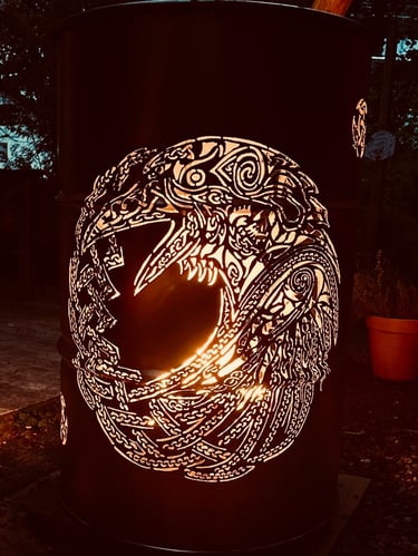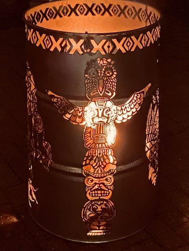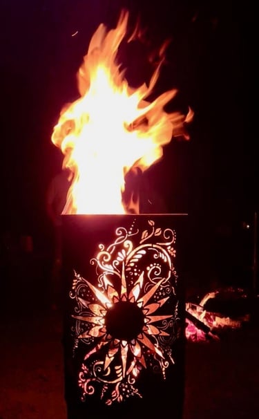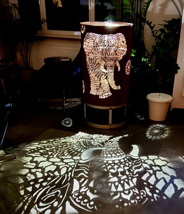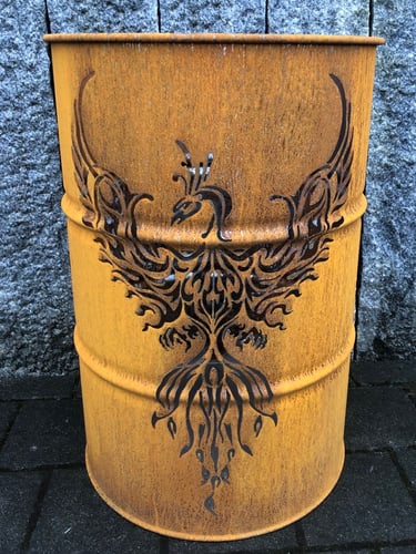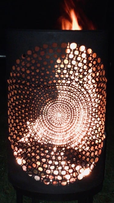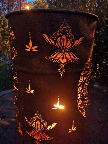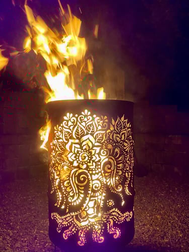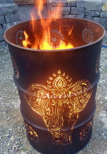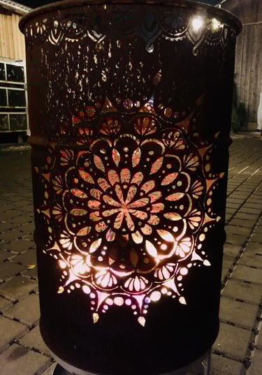Füürfässer mit Mandalas, Mustern und sonstigen Motiven